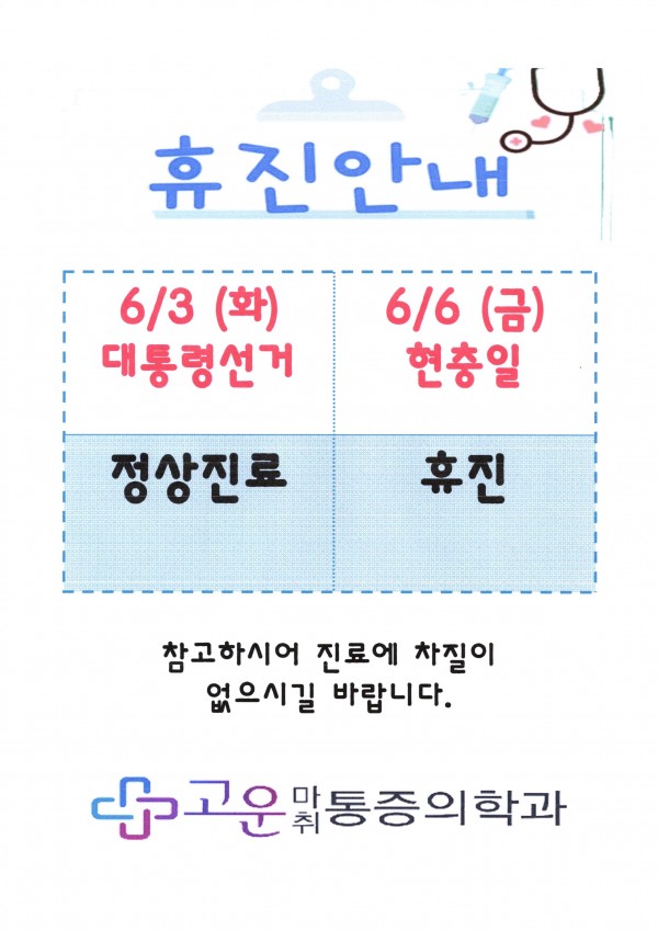 2025년 6월 3일(화)/대통령선거 : 정상진료 (09:30~18:30)