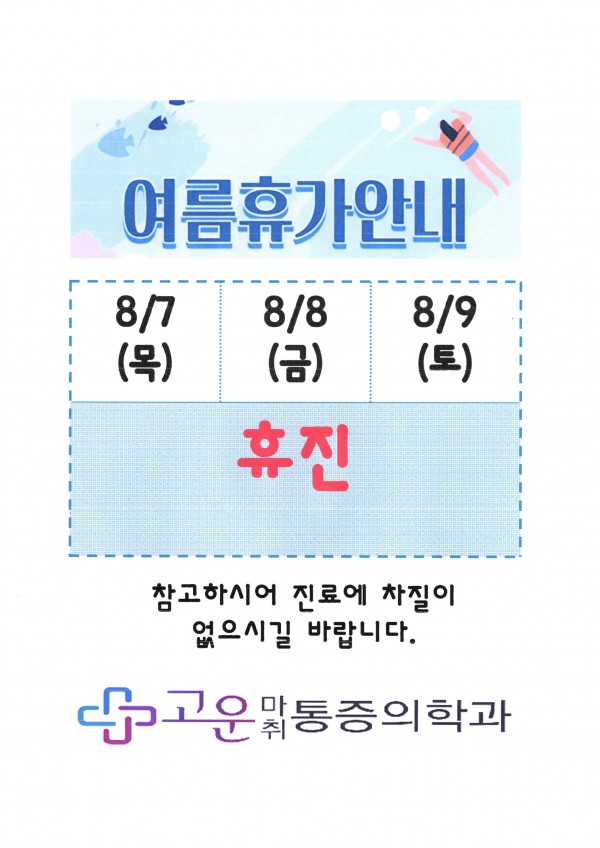 2025년 8월 7일(목) ~ 8월 9일(토) 여름 휴가 입니다.